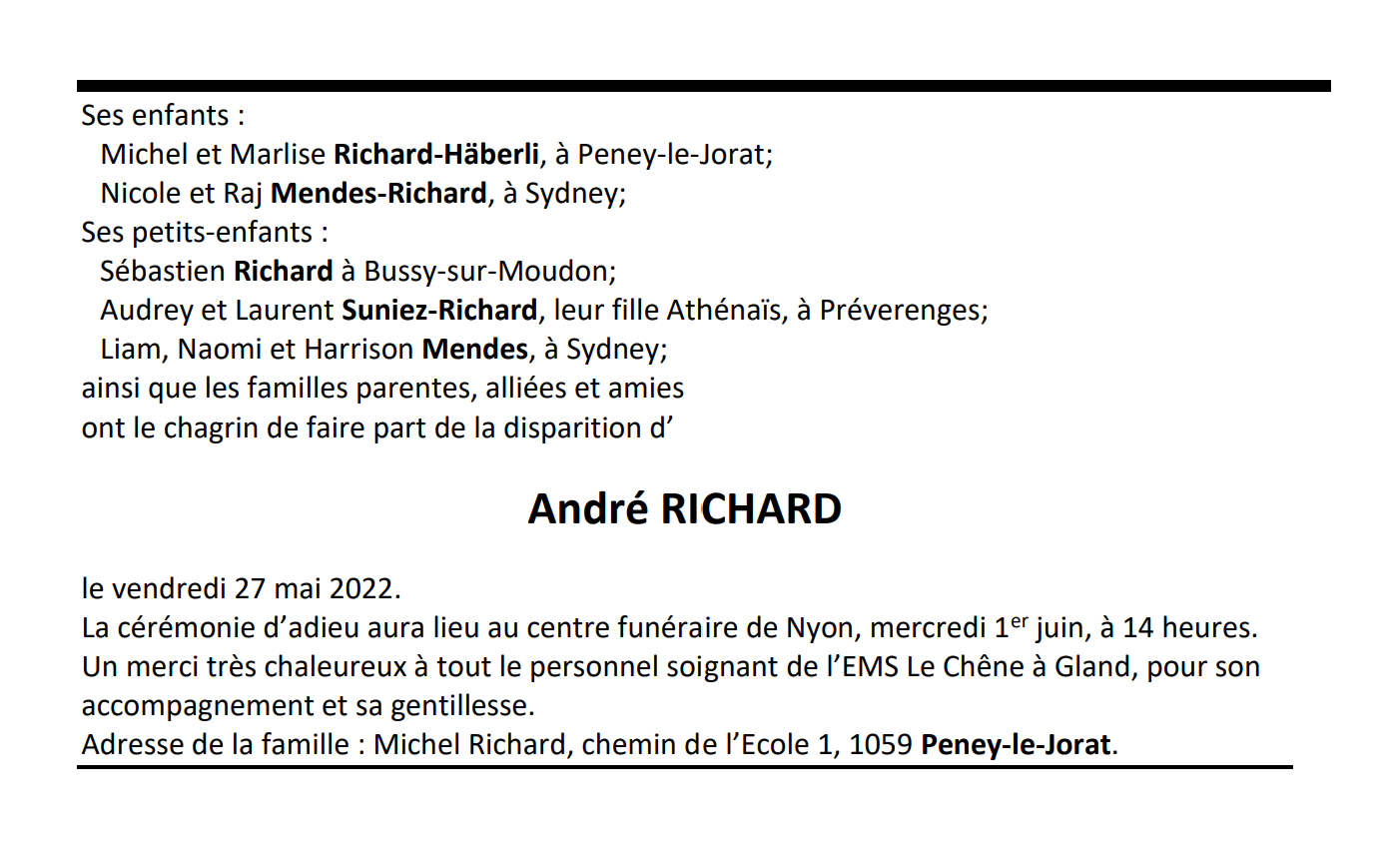 André RICHARD 05 aoû. 1930 - 27 mai. 2022 Avis mortuaire PFG Télecharger PDF Partager sur: Galerie PreviousNext PreviousNext