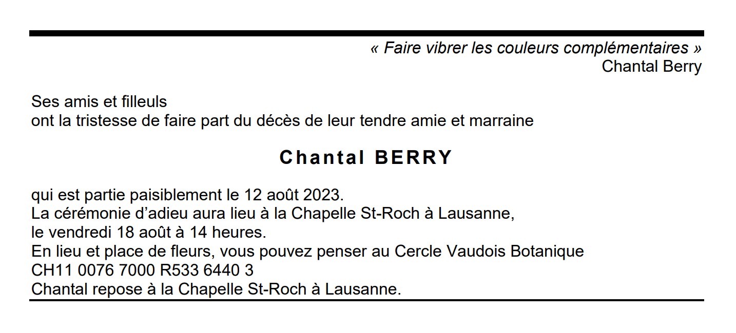 Chantal BERRY 22 juin. 1954 - 12 aoû. 2023 Avis mortuaire PFG Télecharger PDF Partager sur: Galerie PreviousNext PreviousNext