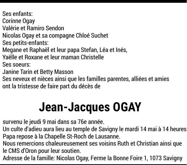 Jean-Jacques OGAY 12 juil. 1948 - 09 mai. 2024 Avis mortuaire PFG Partager sur: Galerie PreviousNext PreviousNext