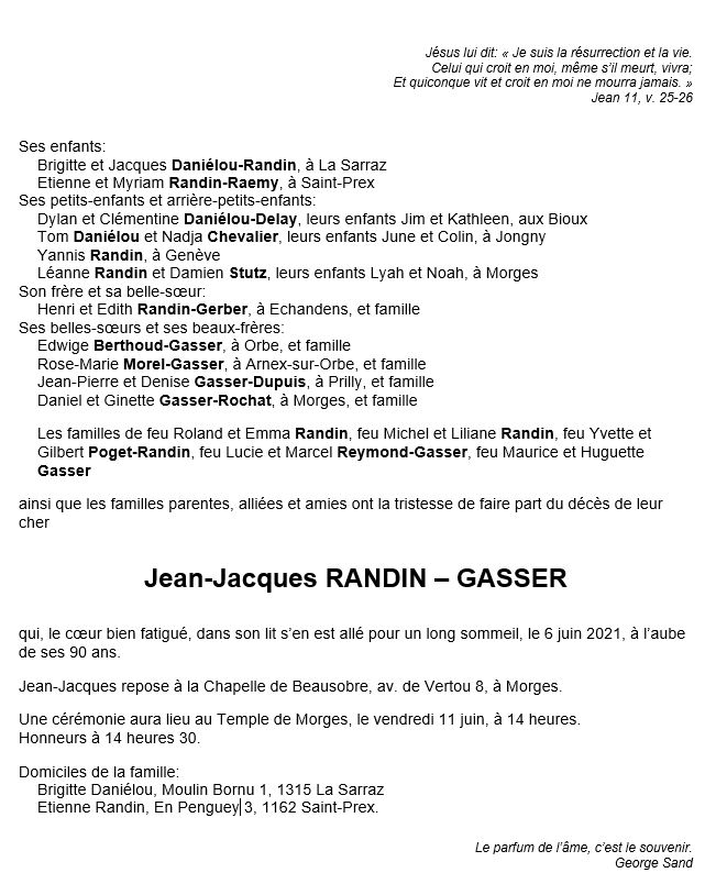 Jean-Jacques RANDIN-GASSER 30 juin. 1931 - 06 juin. 2021 Avis mortuaire PFG Télecharger PDF Partager sur: Galerie PreviousNext PreviousNext