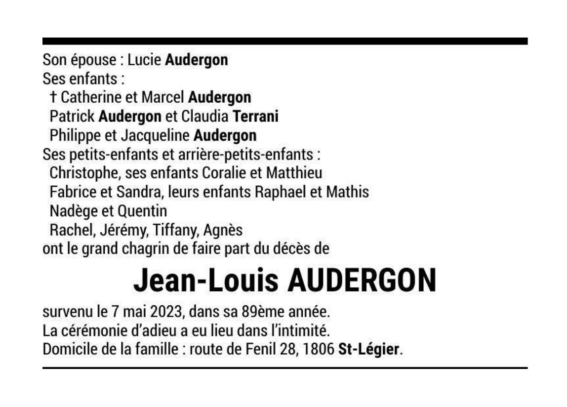 Jean-Louis AUDERGON 01 avr. 1935 - 07 mai. 2023 Avis mortuaire PFG Télecharger PDF Partager sur: Galerie PreviousNext PreviousNext