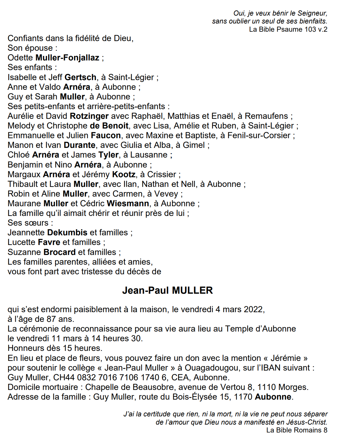 Jean-Paul MULLER 27 aoû. 1934 - 04 mar. 2022 Avis mortuaire PFG Télecharger PDF Partager sur: Galerie PreviousNext PreviousNext