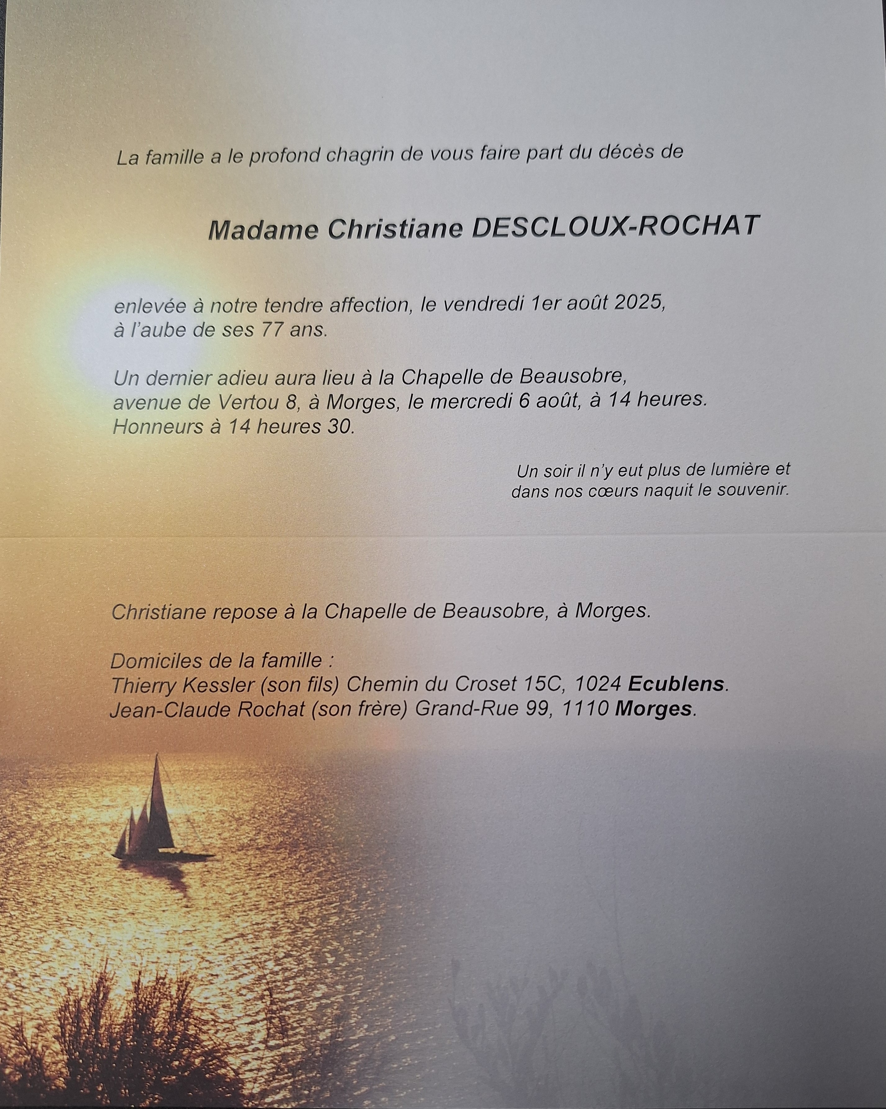 Madame Christiane DESCLOUX-ROCHAT