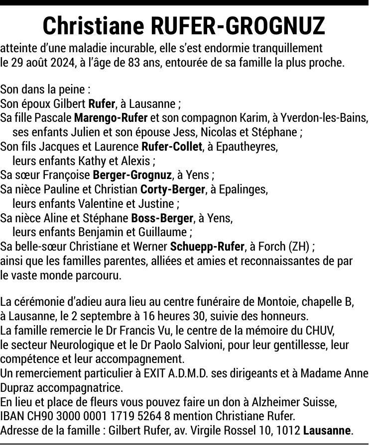 Madame Christiane RUFER-GROGNUZ
