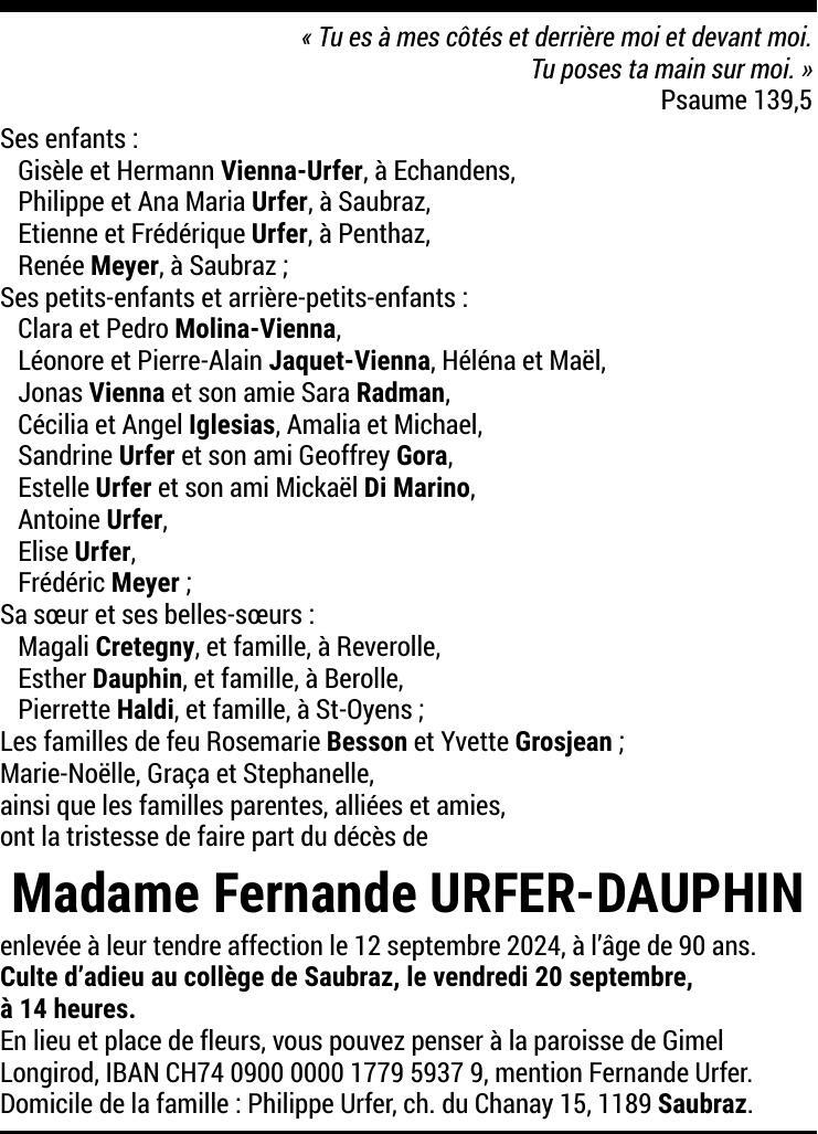 Madame Fernande URFER-DAUPHIN