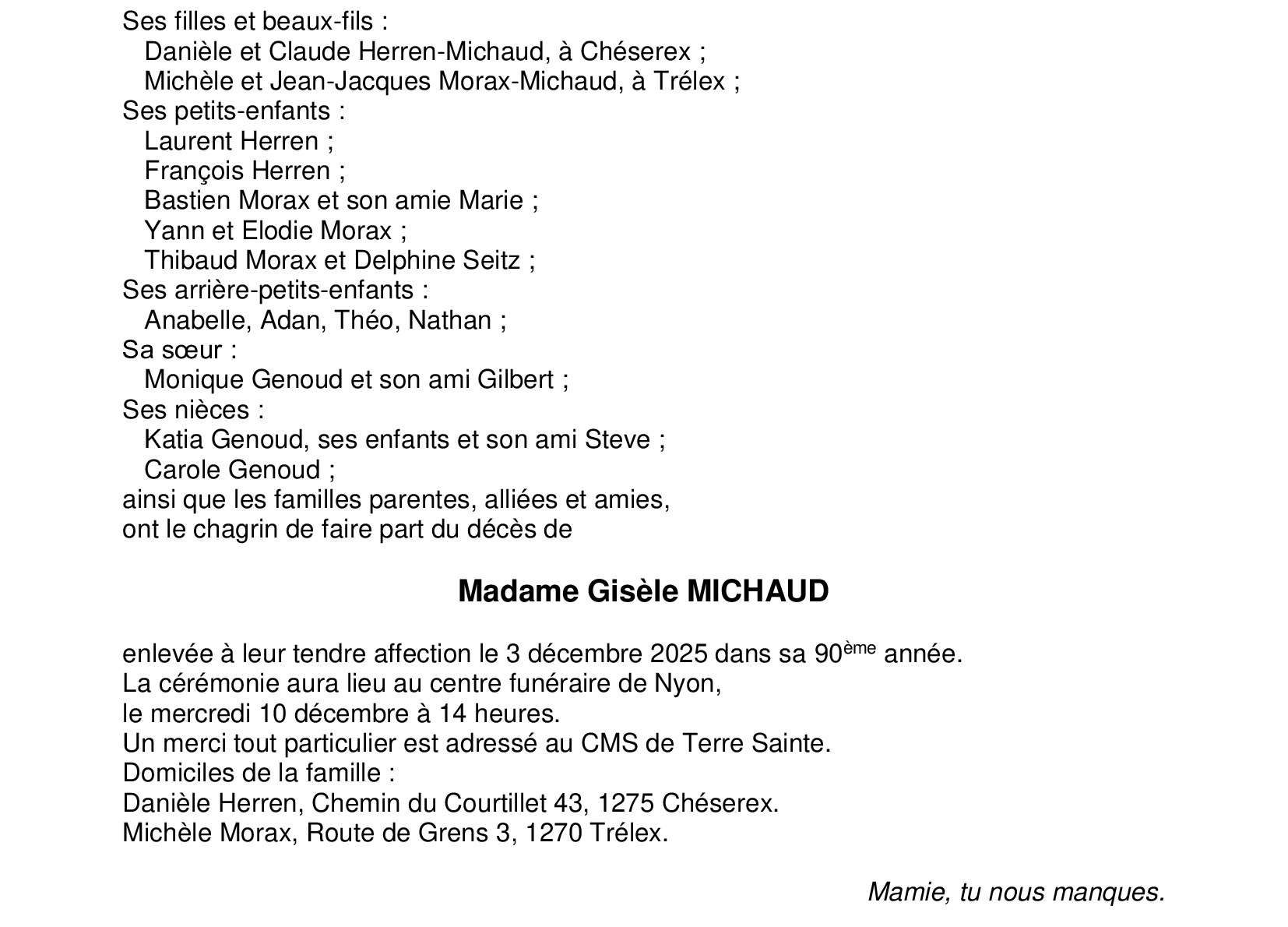Avis mortuaires / Remerciements