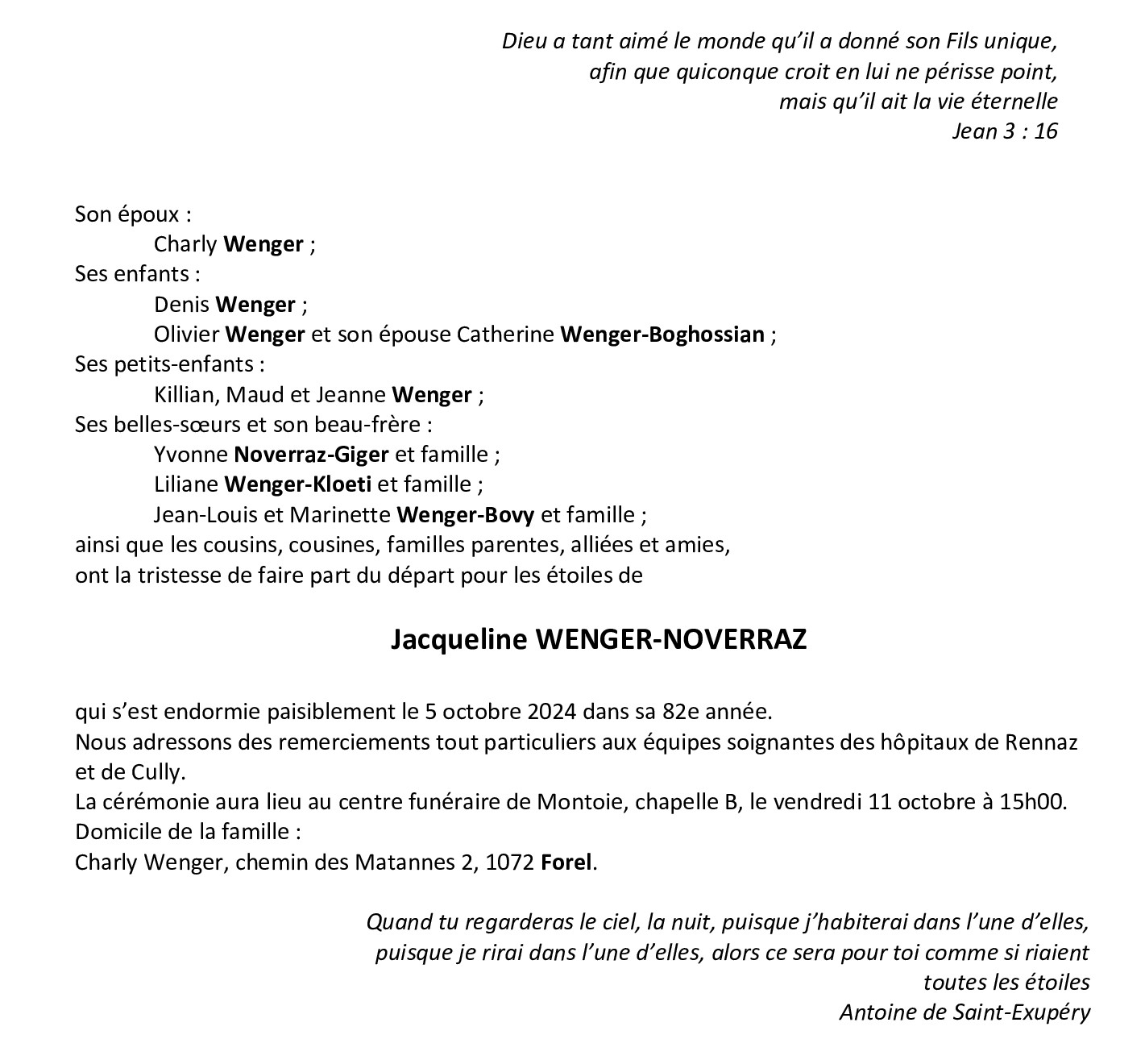 Madame Jacqueline WENGER