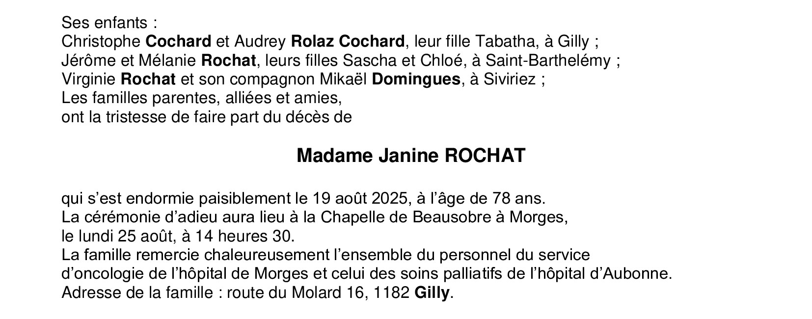 Madame Janine ROCHAT