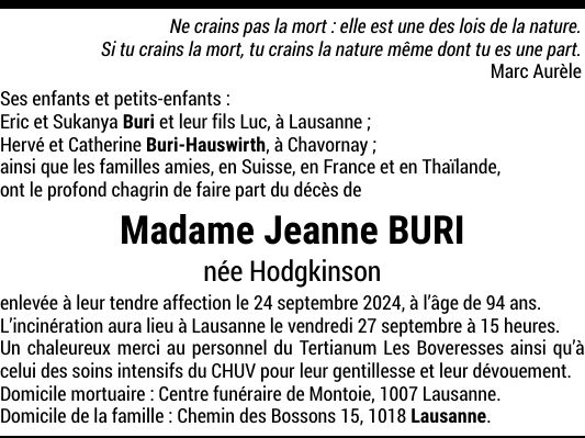 Madame Jeanne BURI