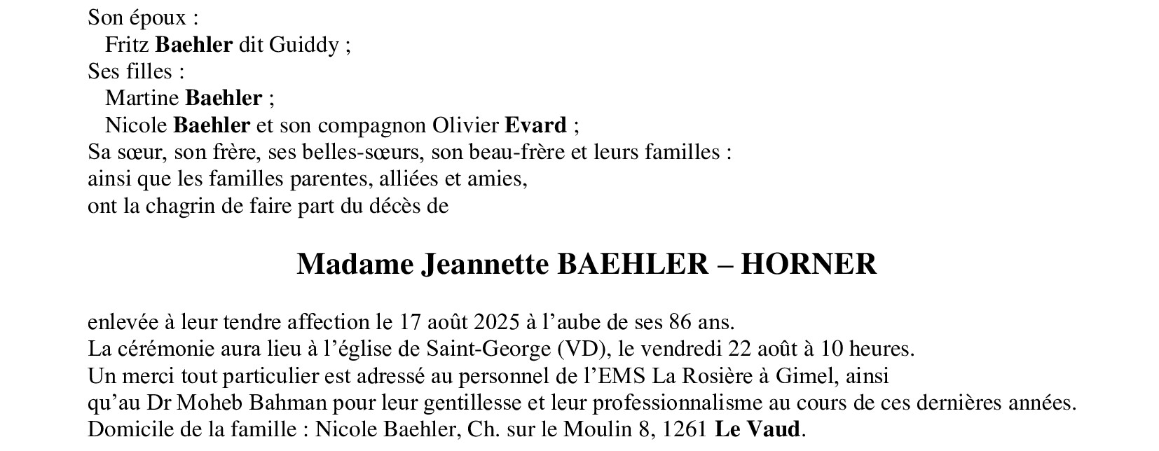 Madame Jeannette BÄHLER