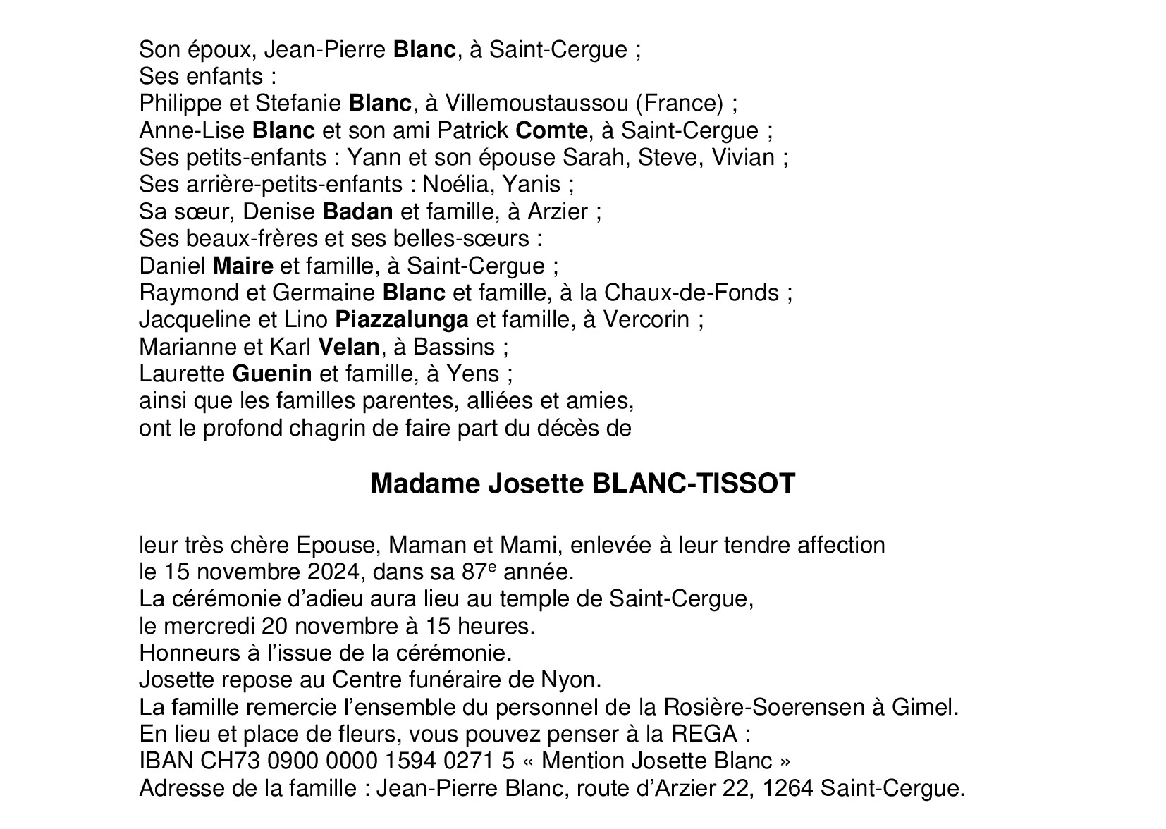 Madame Josette BLANC