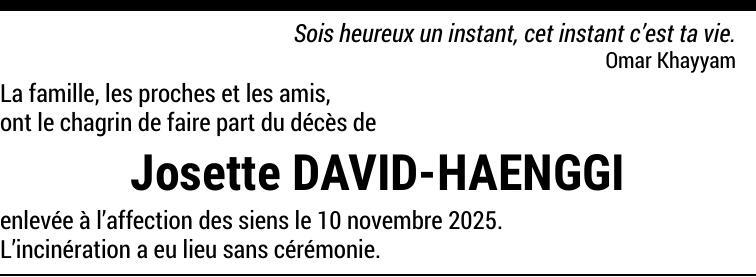 Madame Josette DAVID-HAENGGI
