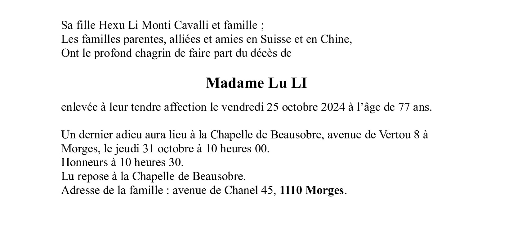 Madame Lu LI