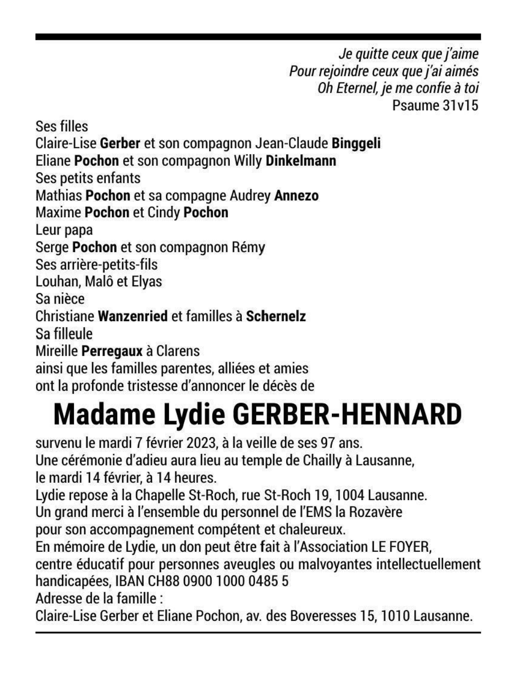 Madame Lydie GERBER-HENNARD