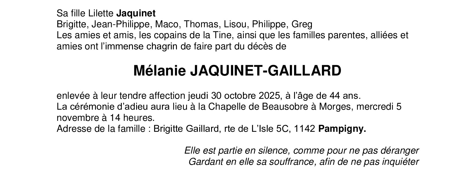 Madame Mélanie JAQUINET