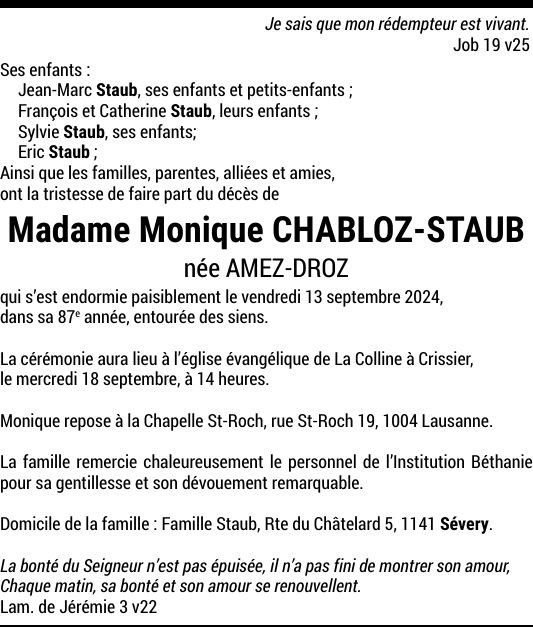 Madame Monique CHABLOZ-STAUB