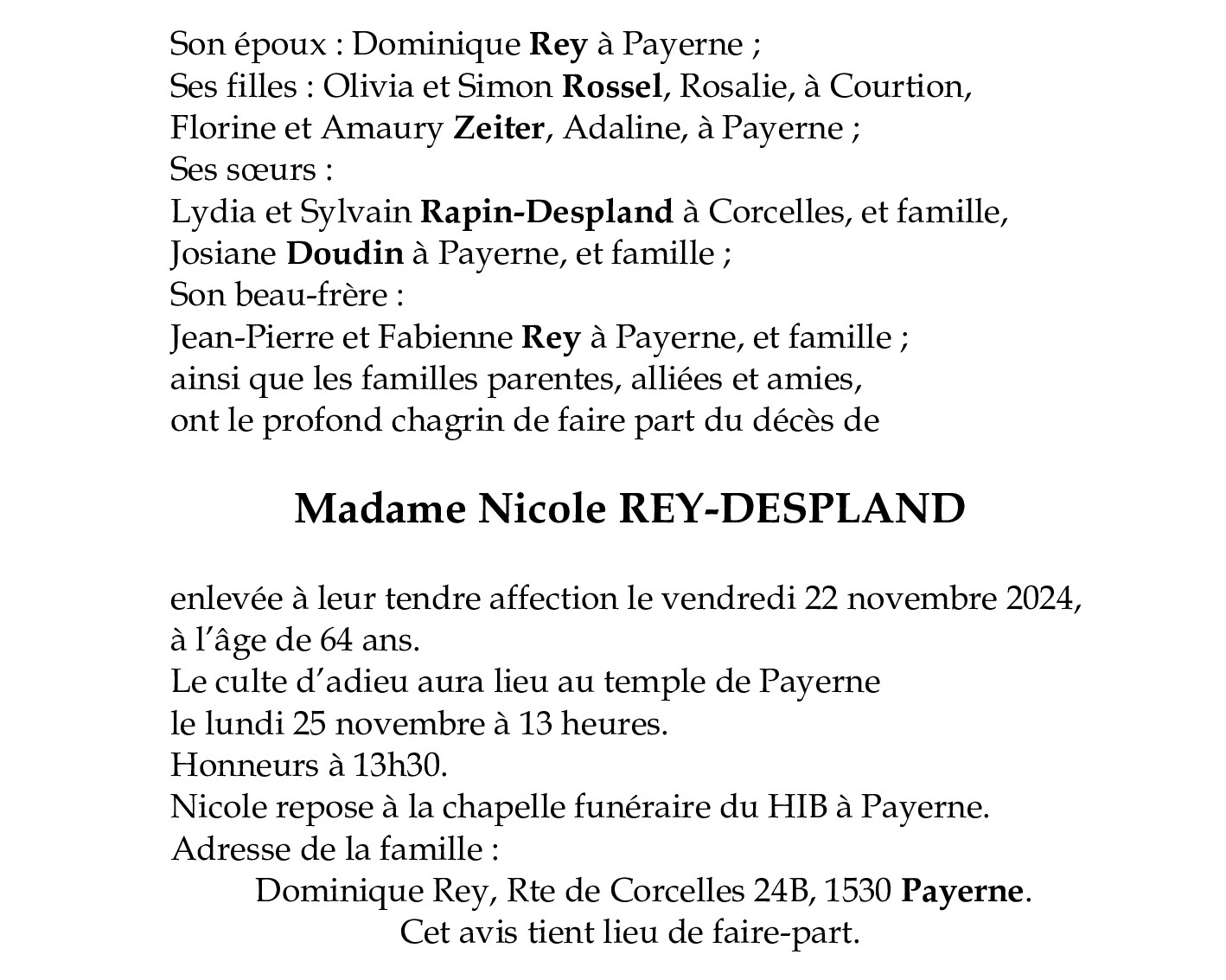 Madame Nicole REY-DESPLAND
