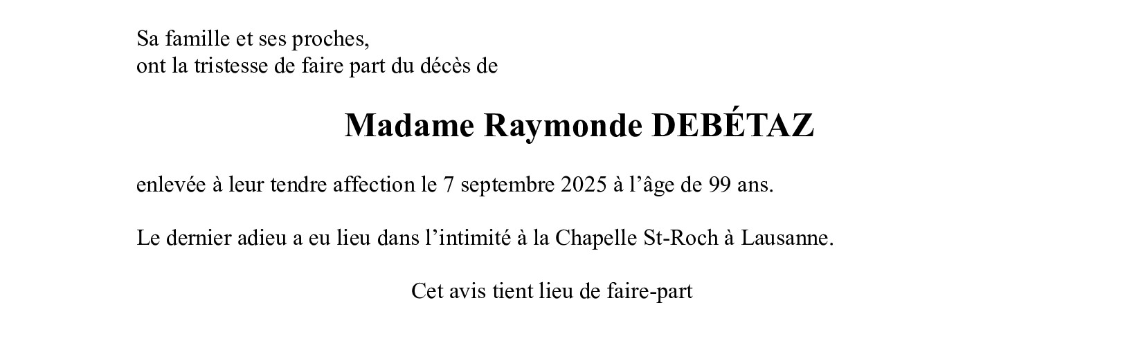 Madame Raymonde DEBÉTAZ