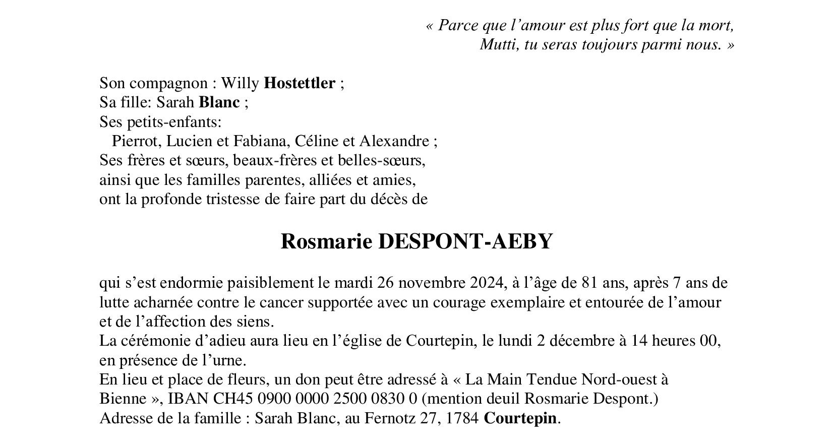 Madame Rosmarie DESPONT-AEBY