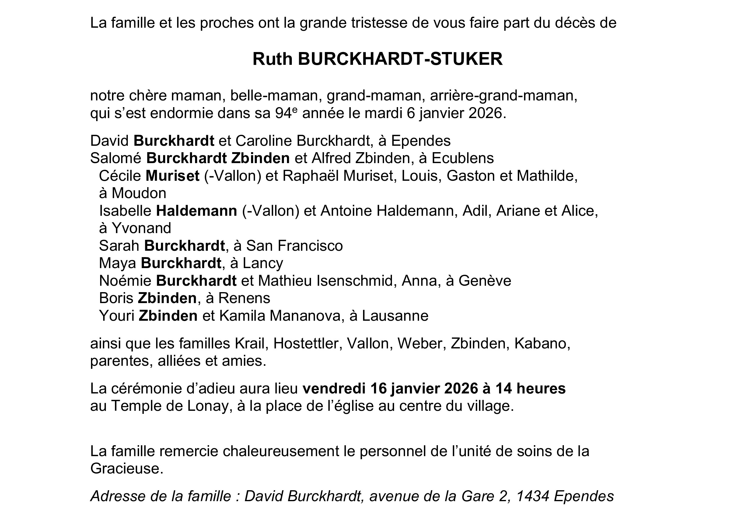 Madame Ruth BURCKHARDT