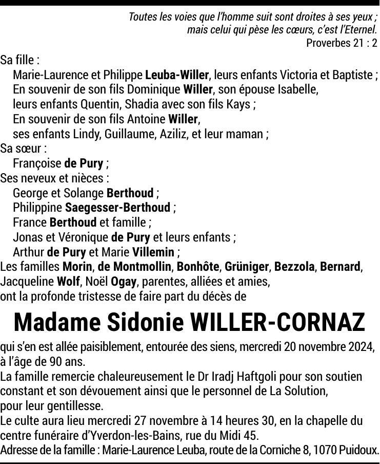 Madame Sidonie WILLER-CORNAZ