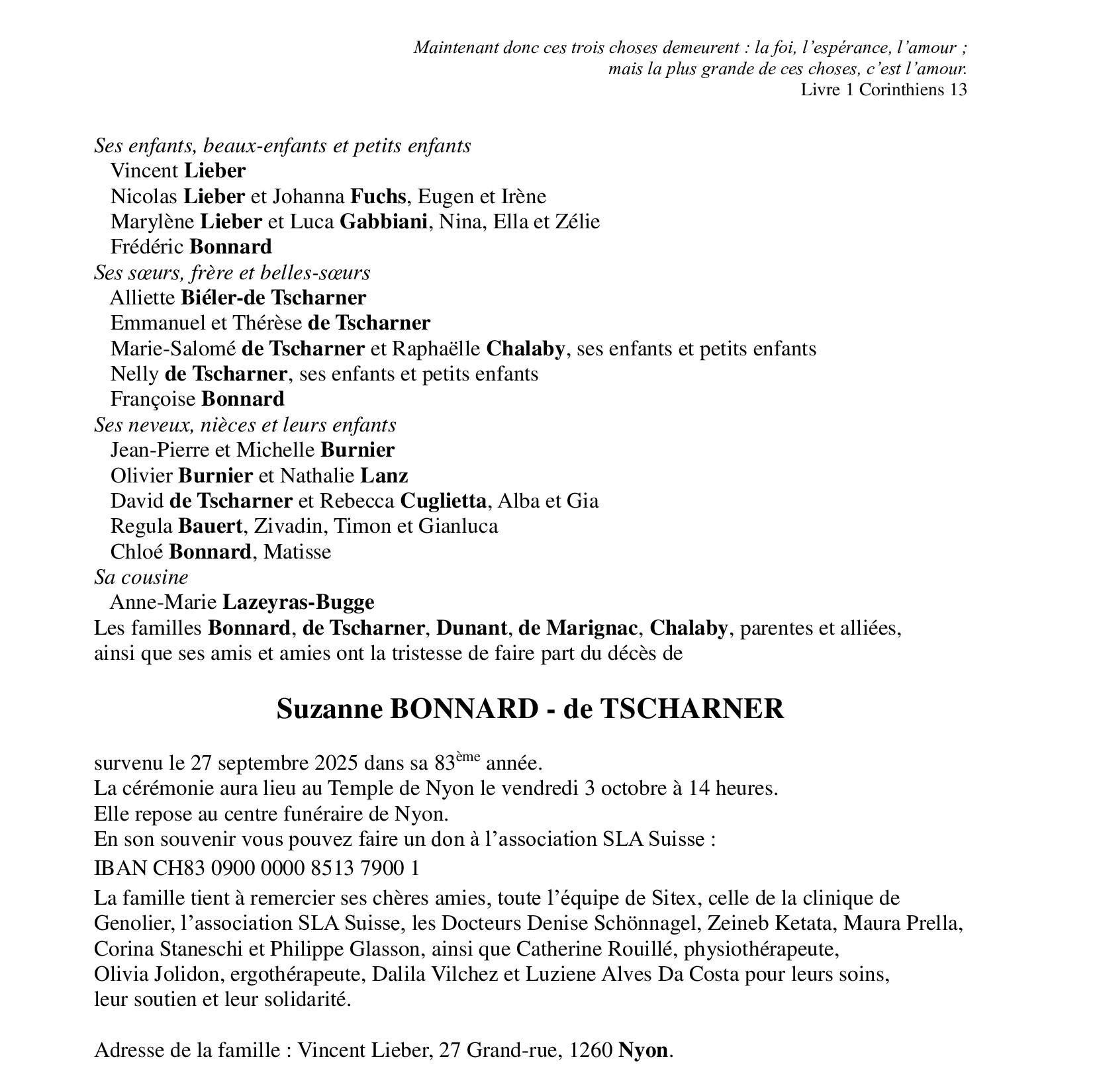 Avis mortuaires / Remerciements