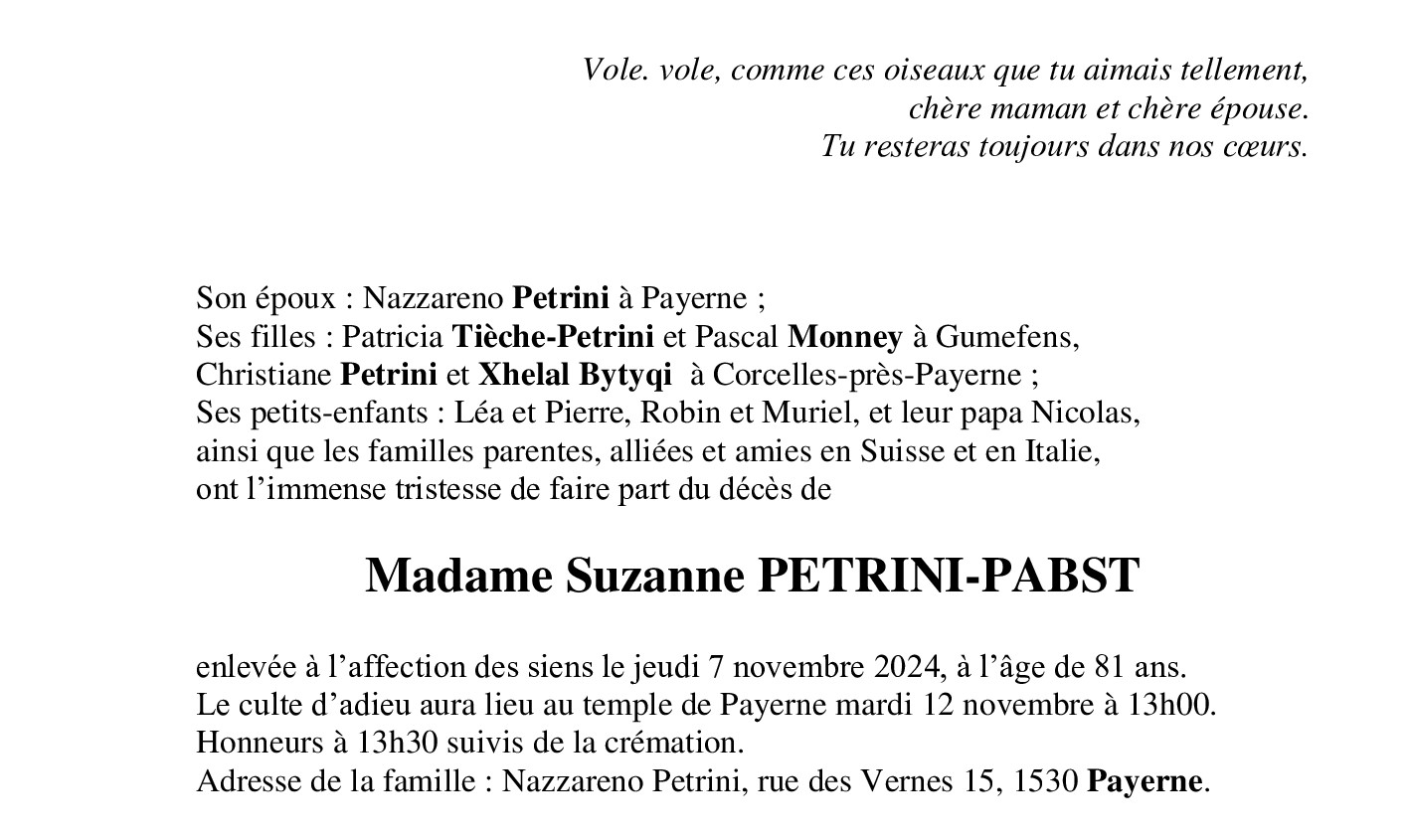 Madame Suzanne PETRINI-PABST