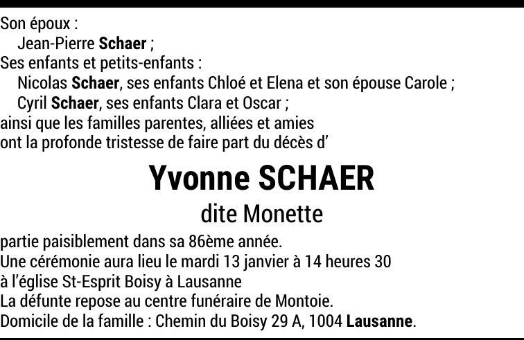 Madame Yvonne SCHAER