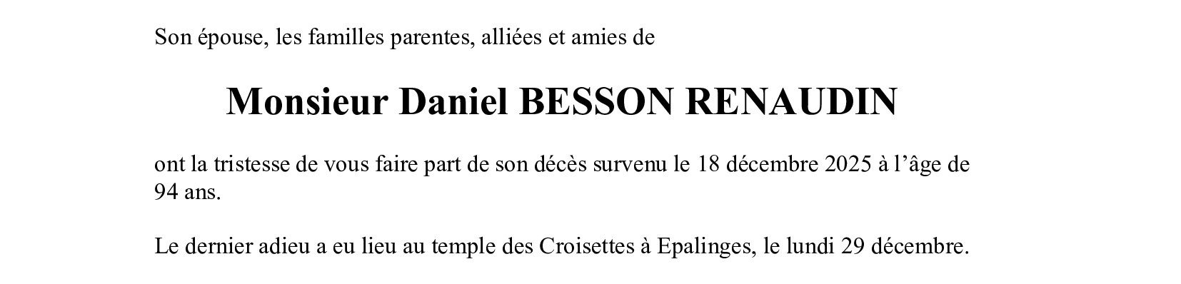 Monsieur Daniel BESSON RENAUDIN