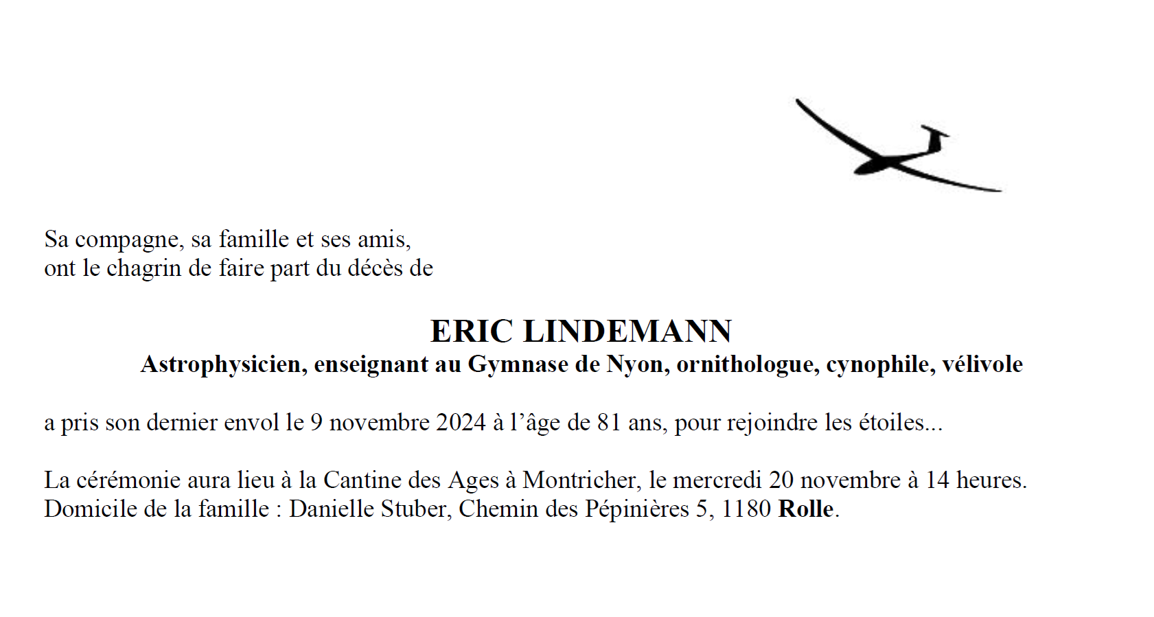 Monsieur Eric LINDEMANN 27 mar. 1943 - 09 nov. 2024 Avis mortuaire PFG Télecharger PDF Partager sur: Galerie