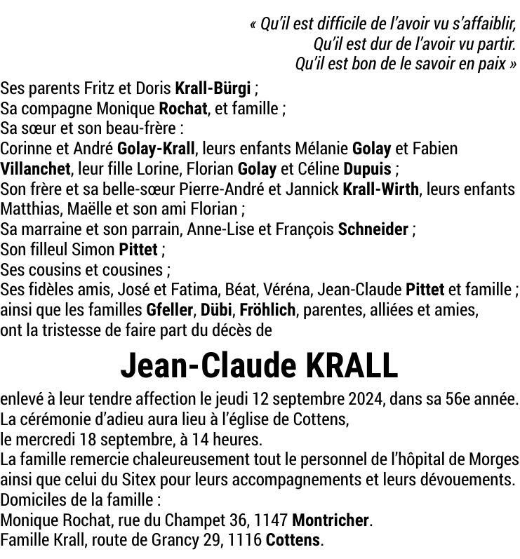 Monsieur Jean-Claude KRALL 03 sep. 1969 - 12 sep. 2024 Avis mortuaire PFG Partager sur: Galerie PreviousNext PreviousNext