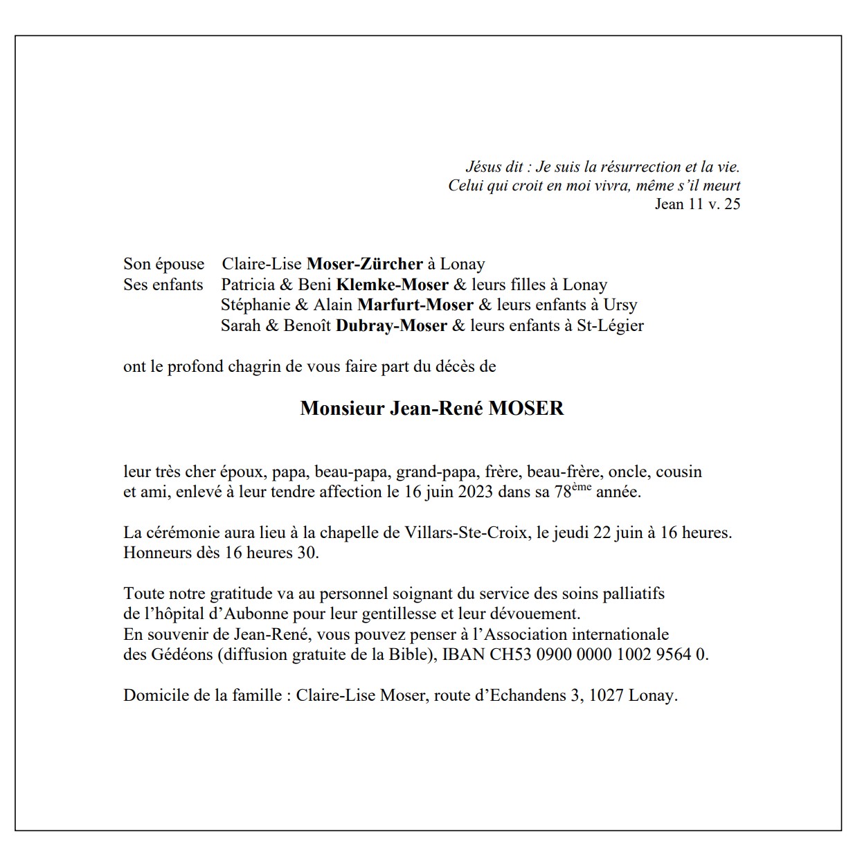 Monsieur Jean-René MOSER 19 nov. 1945 - 16 juin. 2023 Avis mortuaire PFG Télecharger PDF Partager sur: Galerie PreviousNext PreviousNext