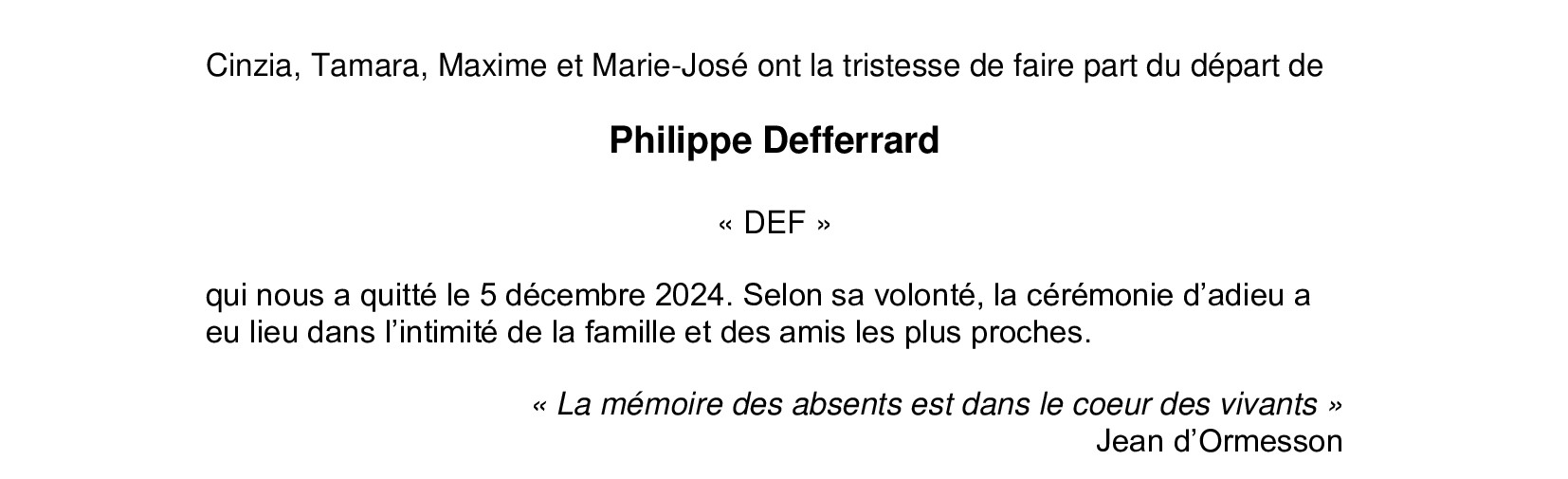 Avis mortuaire PFG