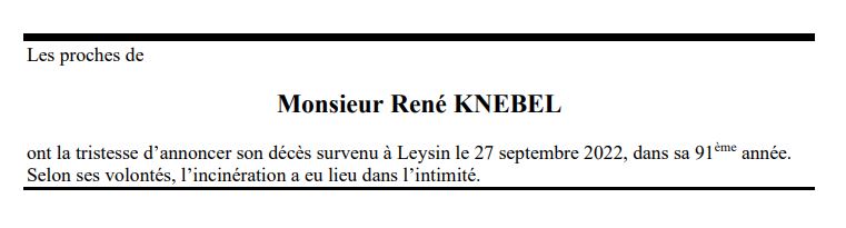 Monsieur René KNEBEL 12 oct. 1931 - 27 sep. 2022 Avis mortuaire PFG Télecharger PDF Partager sur: Galerie PreviousNext PreviousNext